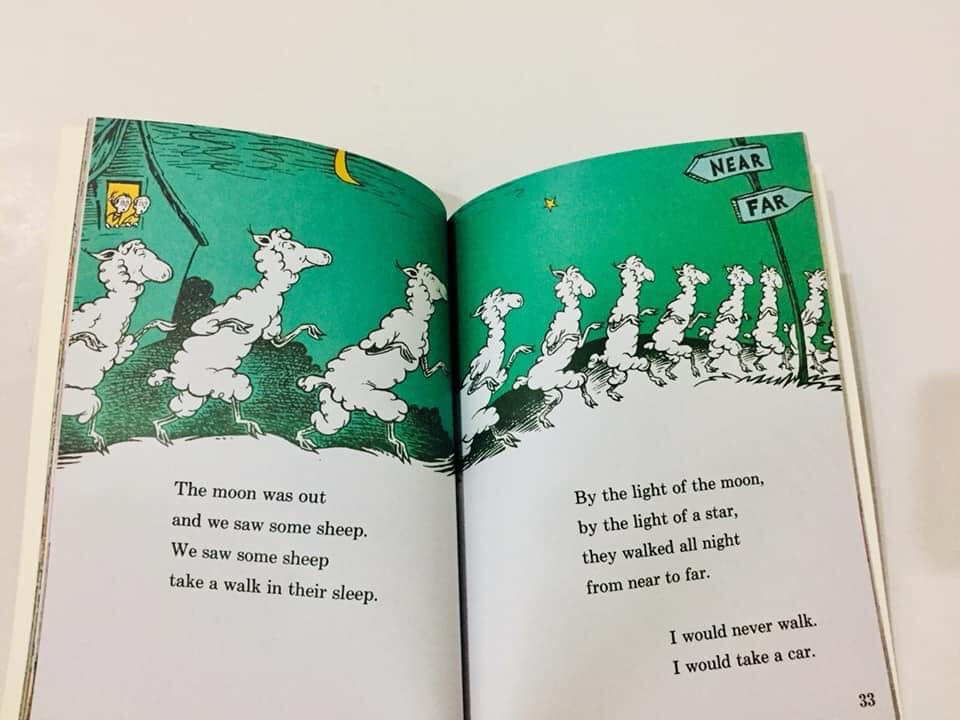 Ngôn ngữ của Dr Seuss mang những vần điệu đầy tiết tấu, tròn vành rõ chữ. Lượng từ vựng được sử dụng trong sách cực kỳ ít ỏi, kết cấu câu lặp đi lặp lại, chỉ thay đổi vị trí một số ít từ ngữ, trẻ chỉ cần nhớ được câu đầu tiên thì ngay lập tức dễ dàng đọc được câu phía sau.
