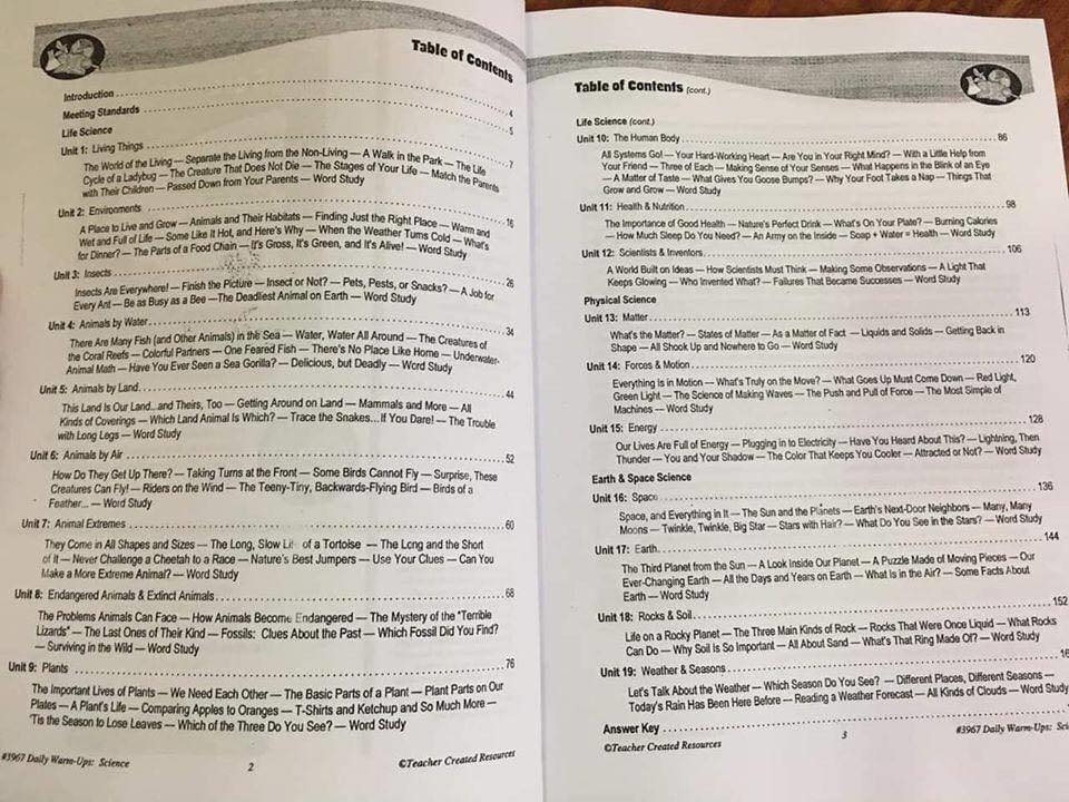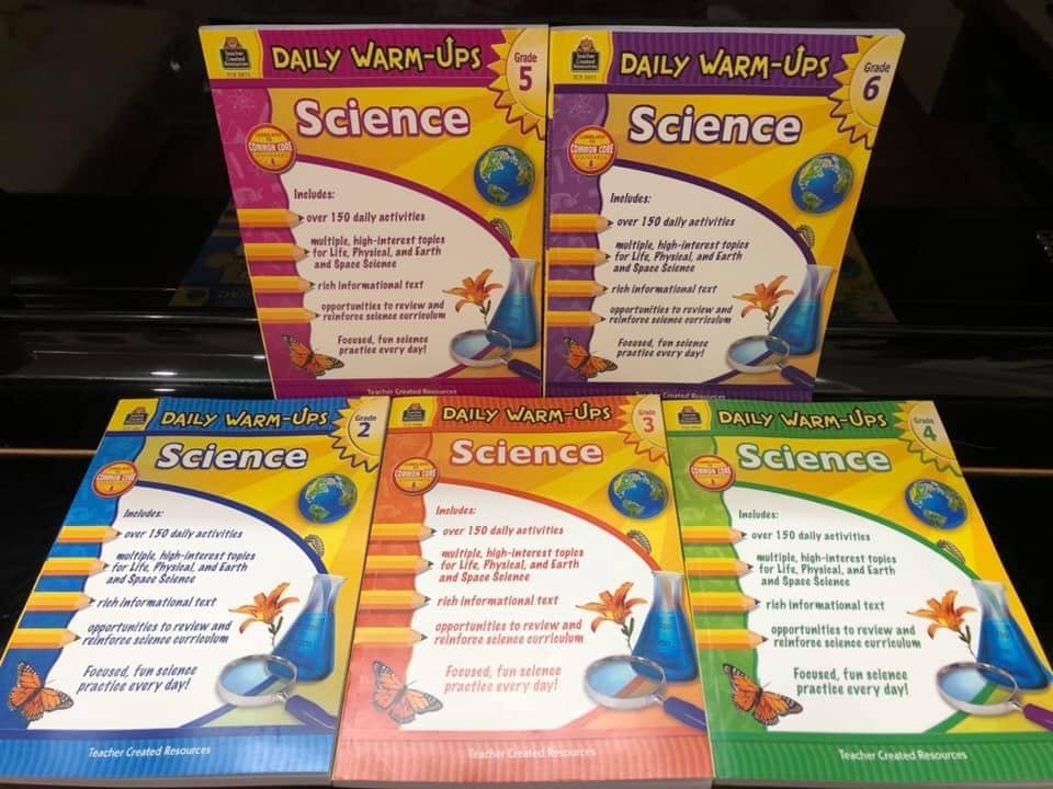 DAILY WARM-UPS SCIENCE – là bộ sách luyện tập môn khoa học của Teacher Created Resources – một công ty xuất bản giáo dục uy tín chuyên cung cấp các tài liệu giáo dục cho giáo viên và phụ huynh tại Mỹ được thành lập từ năm 1977.