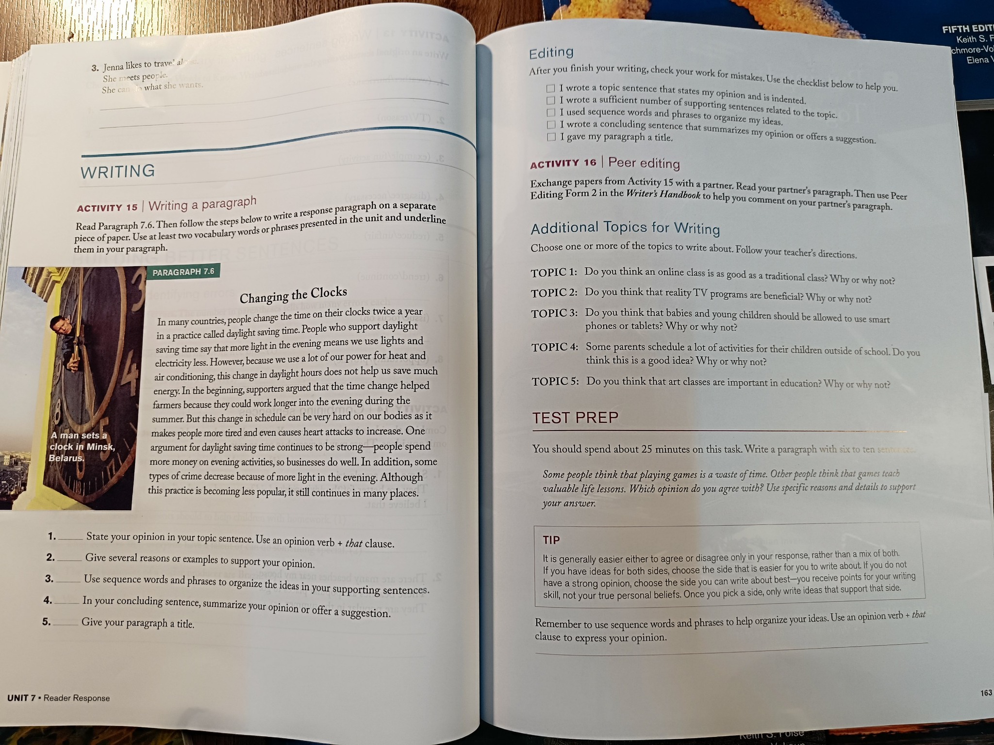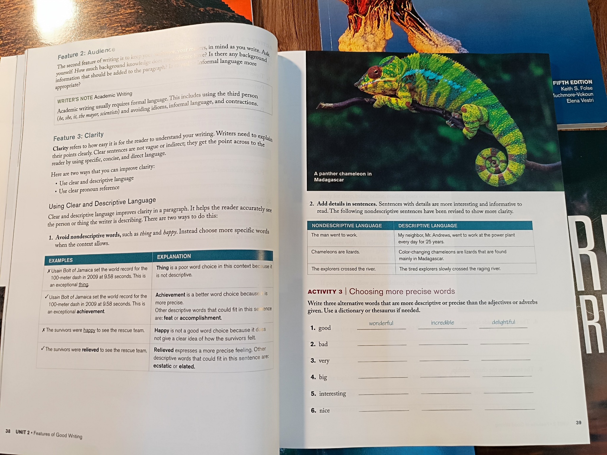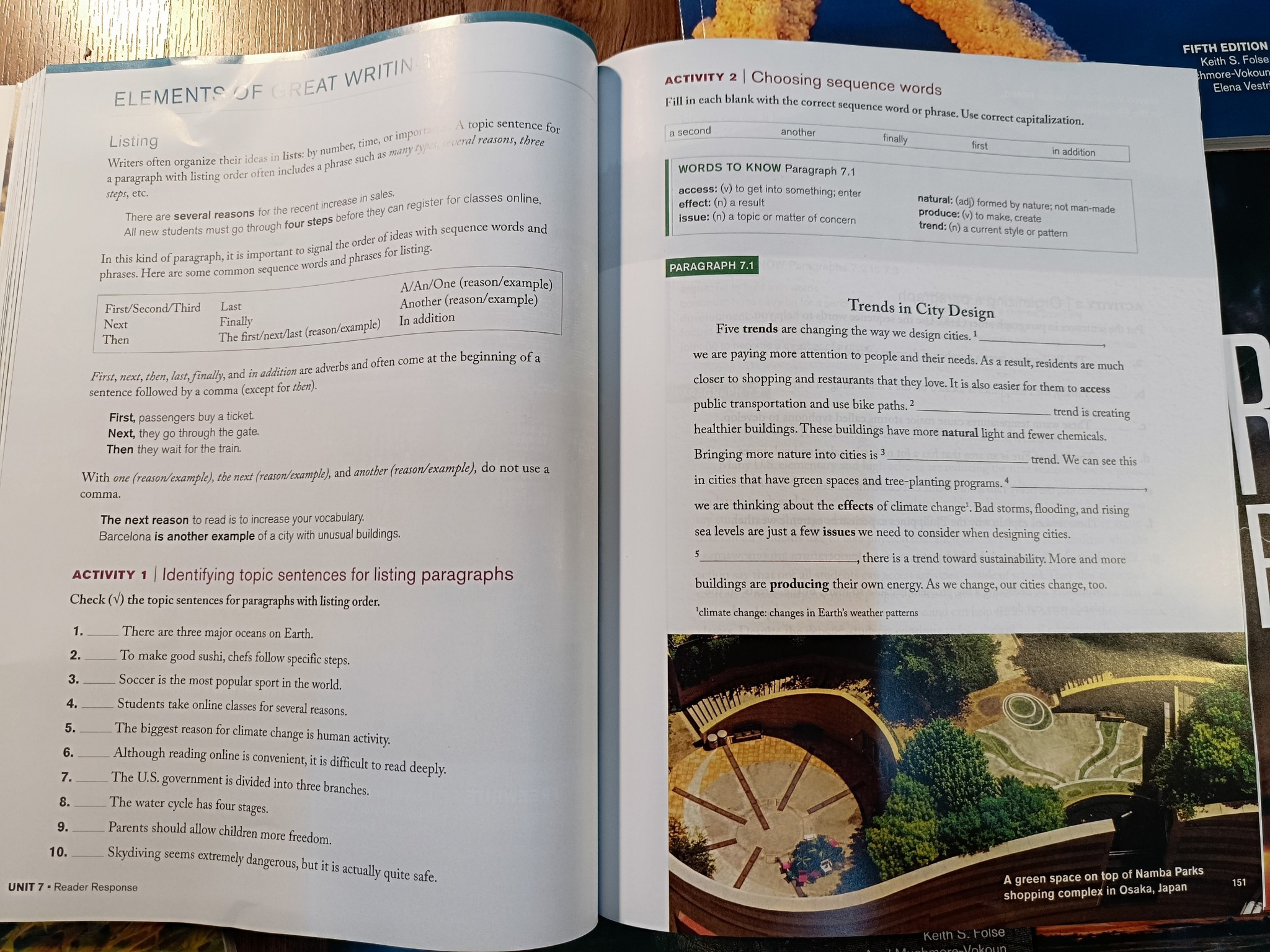 Quyển 5 mỗi chứa kiến thức luyện viết ở bậc cao nhất. Nó có phần đưa ra các topic để viết luận, giải thích rõ ràng cách xây dựng từ vựng tốt nhất và đưa ra các câu chủ để cho bài luận đó và cuối cùng là từ nối câu để bài luận được chau chuốt và hay nhất.