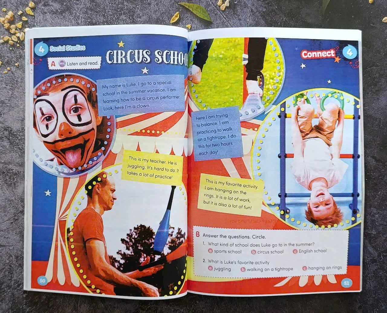 Điểm nổi bật của bộ này là luyện cả 4 kỹ năng NGHE – NÓI – ĐỌC – VIẾT, nội dung sách hấp dẫn với màu sắc đẹp, hình ảnh minh họa sống động thể hiện qua đời sống thường ngày, cách trình bày các từ vựng gây thích thú và nhớ sâu. Đi cùng bộ sách này sẽ giống như theo dõi một bộ phim hoạt hình về cuộc sống gia đình, xây dựng kiến thức ngữ pháp, từ vựng từ cơ bản đến nâng cao theo cách hợp lý, logic có thể dễ dàng áp dụng được ngay vào thực tế nên không quá khó với các con dù mới bắt đầu hay đã quen với việc tự luyện tiếng Anh.