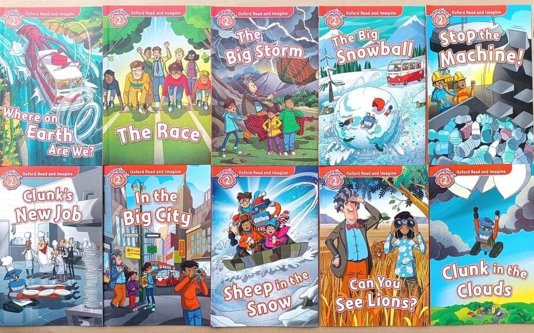 10 cuốn – Dành cho các con muốn kỹ năng giao tiếp của mình được nâng cao. Từng câu truyện ngắn bộ truyện Oxford Read and Imagine được lồng vào mỗi cuốn sách, kèm đó là cấu trúc ở các tình huống, hội thoại khác nhau câu không quá khó, được lặp lại để con luyện tập thành thạo hơn