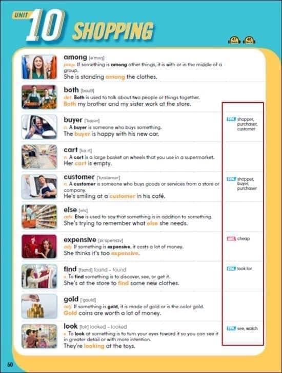 – Các loại khác nhau bao gồm các từ đích của mỗi đơn vị Các đoạn đọc (truyện tranh, nhật ký, blog, hội thoại, v.v.) Danh sách từ cấu thành (2 trang)