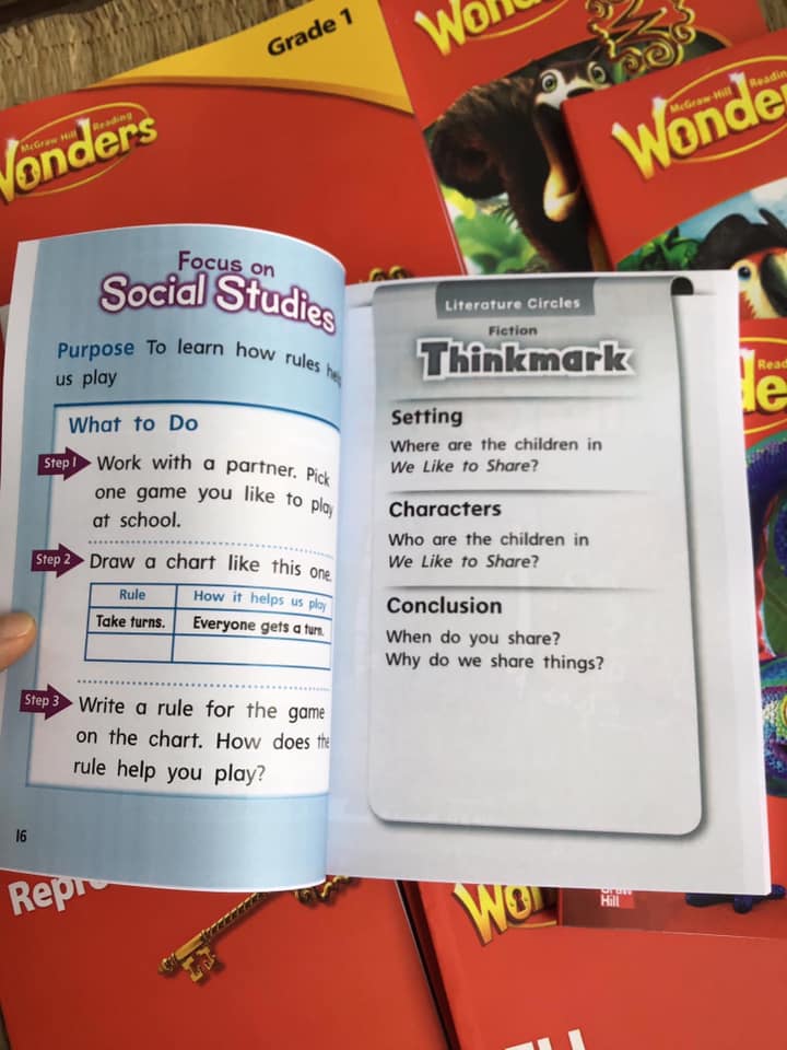 #WONDER grade 1 cho các bạn lớp 1. Sách sẵn bán ạ. In màu laser nét căng, bìa cán ko cong, giấy double xanh đậm. Bởi, sách in nó cũng đa dạng giá đó ạ, các c mua sách in mà thất rẻ quá, thì cũng hỏi ngta xem in laser hay phun, định lượng giấy ntn nhé